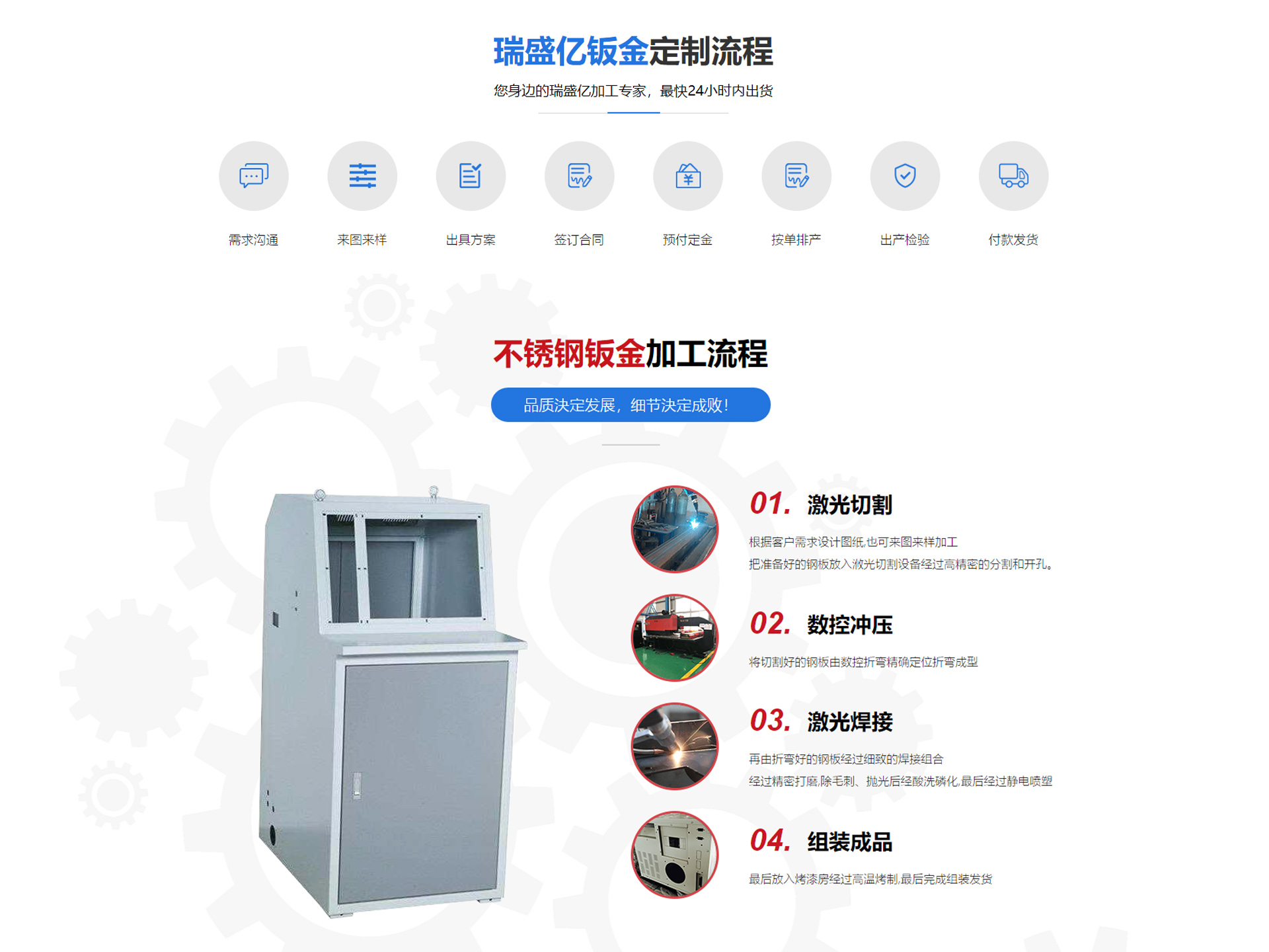 瑞盛億金屬制品(廈門)有限公司是由原廈門市鼎利達工貿(mào)有限公司(行業(yè)20年經(jīng)驗)基礎(chǔ)上(管理團隊,骨干員工均不變)新成立的一家專門從事精密鈑金生產(chǎn)的企業(yè),公司主營:鈑金、機柜箱、設(shè)備機架、不銹鋼制品等。本公司將以誠信、專注、品質(zhì)及時為客戶創(chuàng)造更具價值的產(chǎn)品,為客戶創(chuàng)造價值,贏得客戶的信任和支持,讓客戶和員工滿意是本公司可持續(xù)發(fā)展的根本保證,我們將秉承這一理念貫穿整個生產(chǎn)、經(jīng)營活動中,保持與客戶長期、持續(xù)的合作。